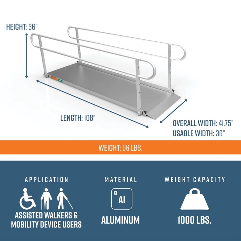 9 Foot EZ-ACCESS® GATEWAY® 3G Ramps with Two-Line Handrails