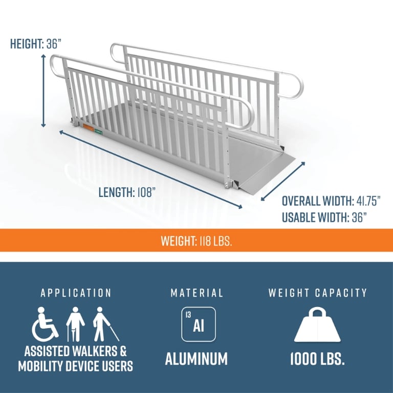 9 Foot EZ-ACCESS® GATEWAY® 3G Ramps with Vertical Picket Handrails